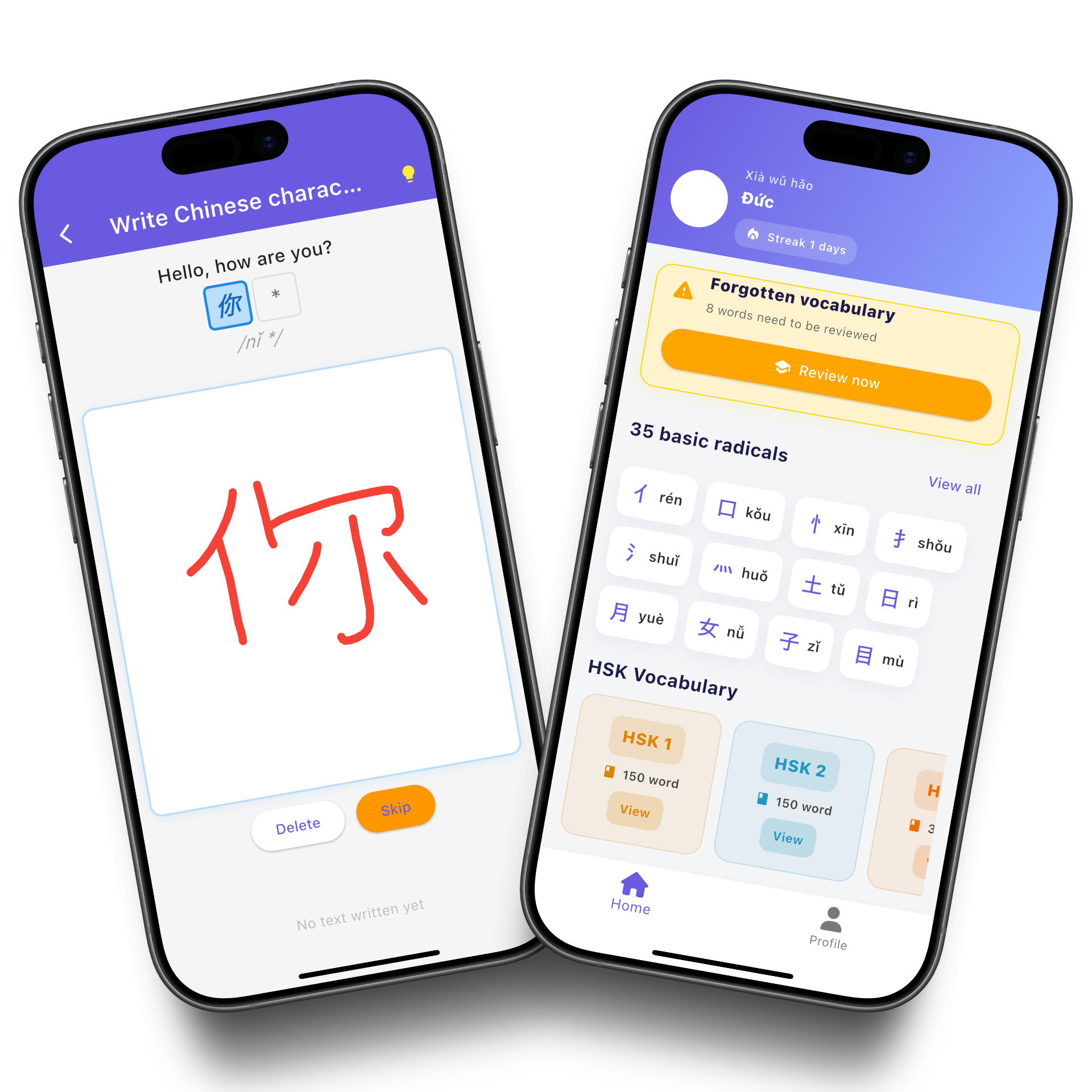 - Full access to all HSK vocabulary and all writing lessons